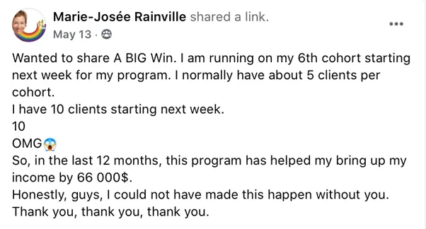 I wanted an online program but I didn't know what it should be about. TLP helped me nail down my idea - and once I had it, I put my program together in 4-6 weeks.